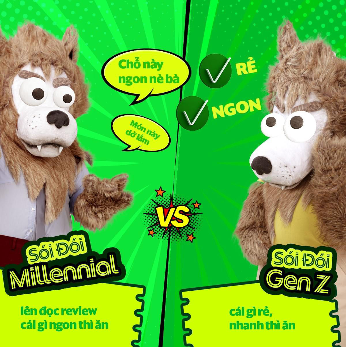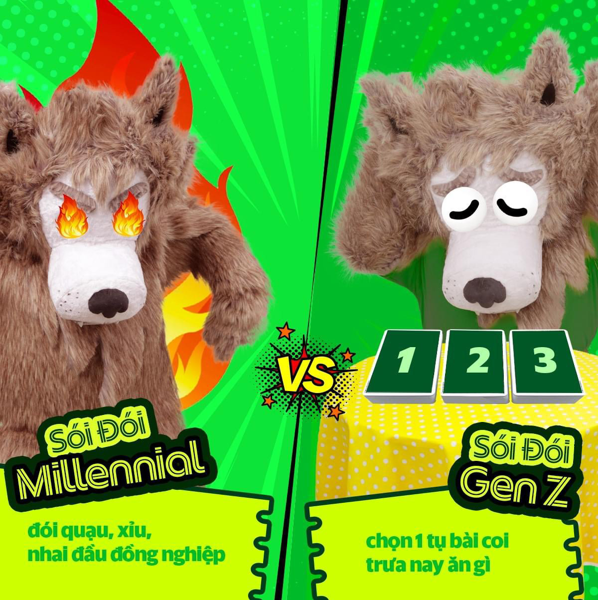 In Vietnamese, we have a saying: As hungry as a wolf. We don’t have wolves here, we come up with it just because the word “Hungry” - Đói & “Wolf” - Sói rhymths. But hey, people know what a wolf kinda looks like. And it’s more than good enough to make a campaign out of it.