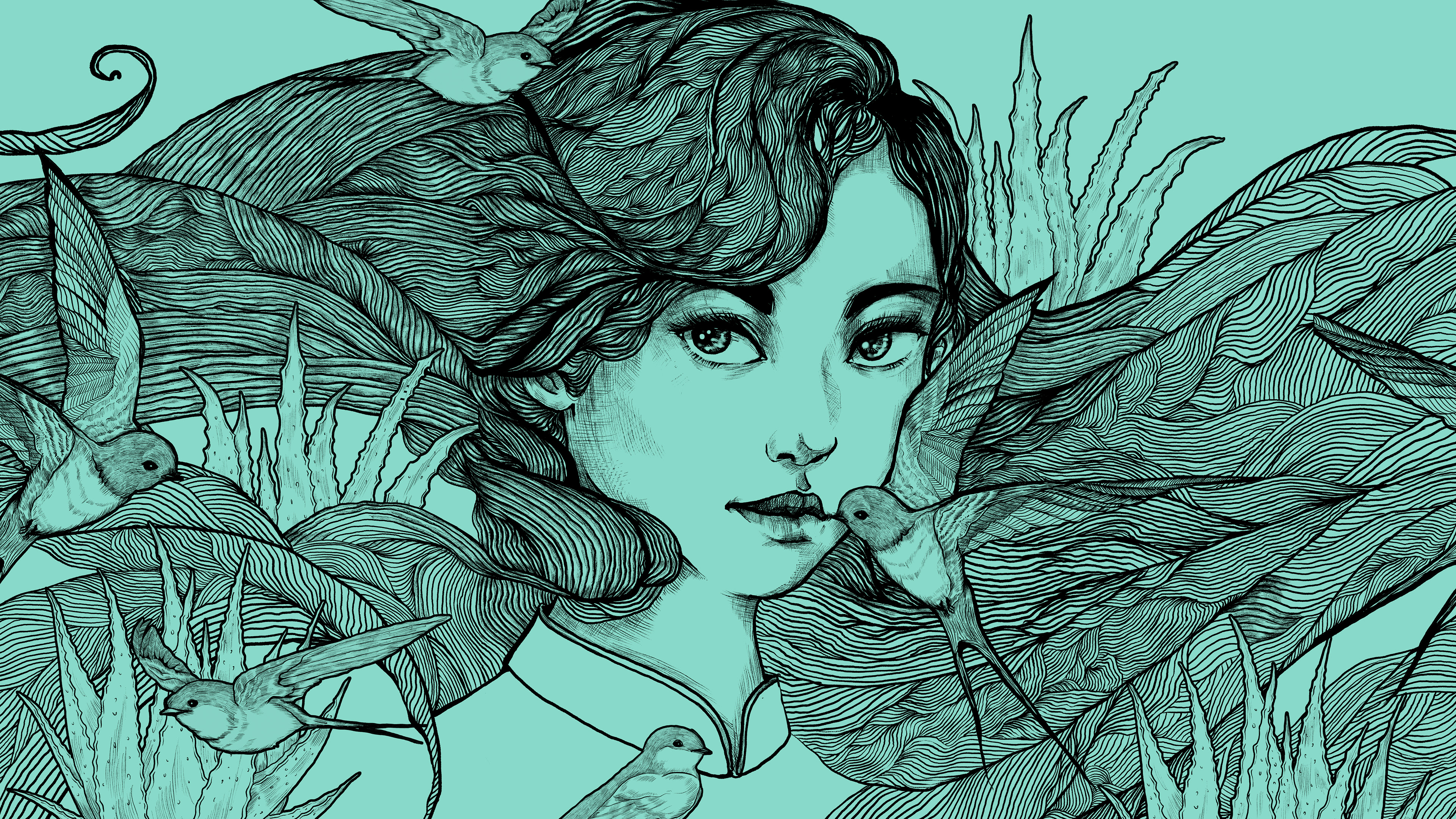 It looks pretty simple, but with just the girl's hair, we had to hand drawn about… 50 different versions with lots of levels: short hair, long hair, big waves, small waves, wearing a headband, not wearing a headband etc. Not to mention other details such as the swallows, aloe vera, and the girl's costumes (earrings, diamonds, etc.) are also carefully edi